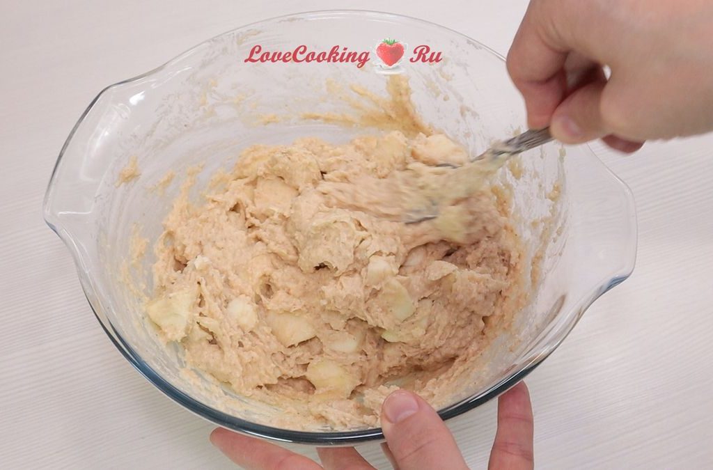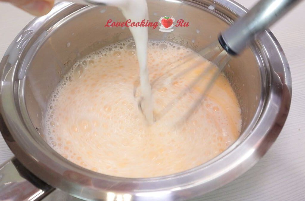 Отдельно взбиваем яйца и молоко. Выливаем в тесто. Перемешиваем.
