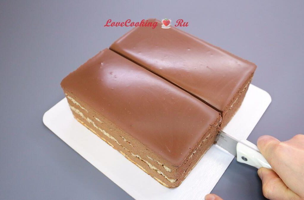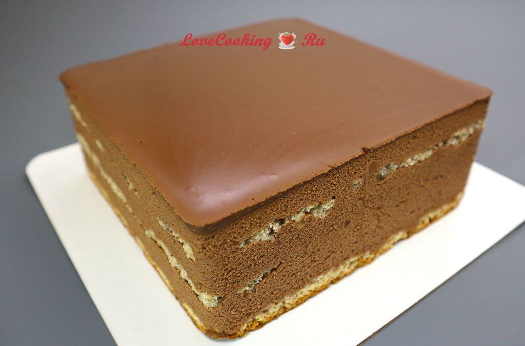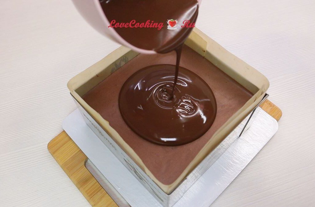Выливаем на торт. Убираем в холодильник на 2 часа, если заливали утром, или на ночь, если заливали вечером.