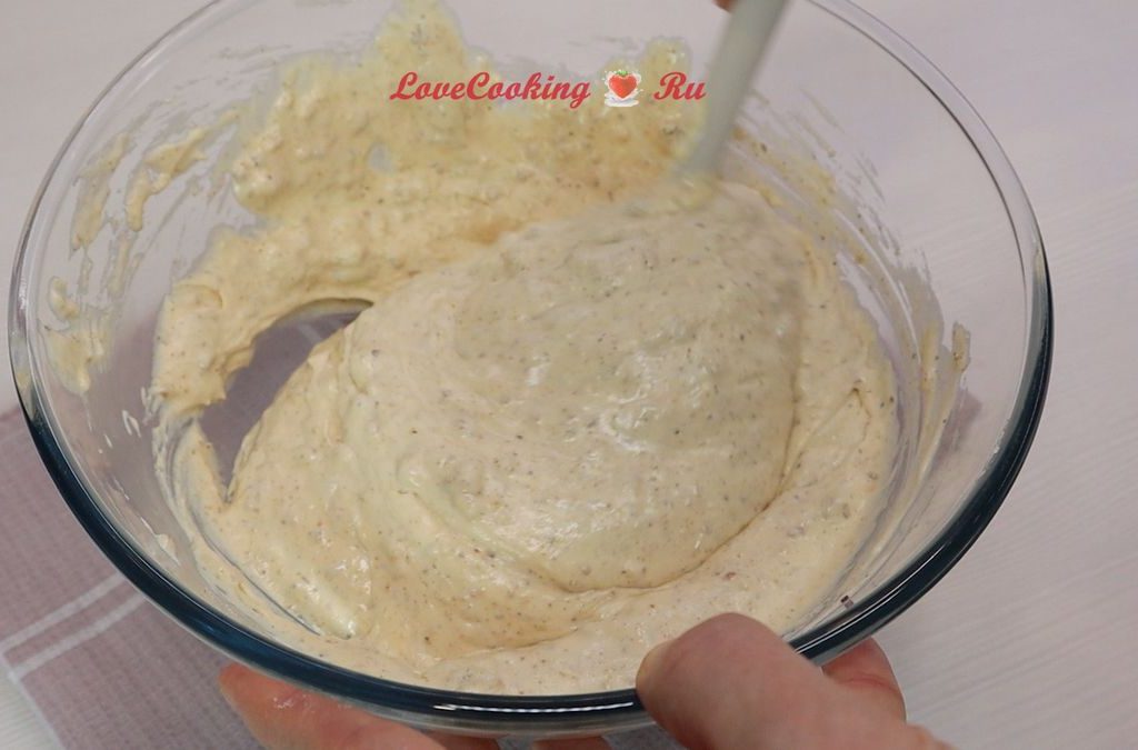 В 2-3 этапа добавляем сухие ингредиенты. Аккуратно вмешиваем их, стараясь максимально сохранить воздушность теста.