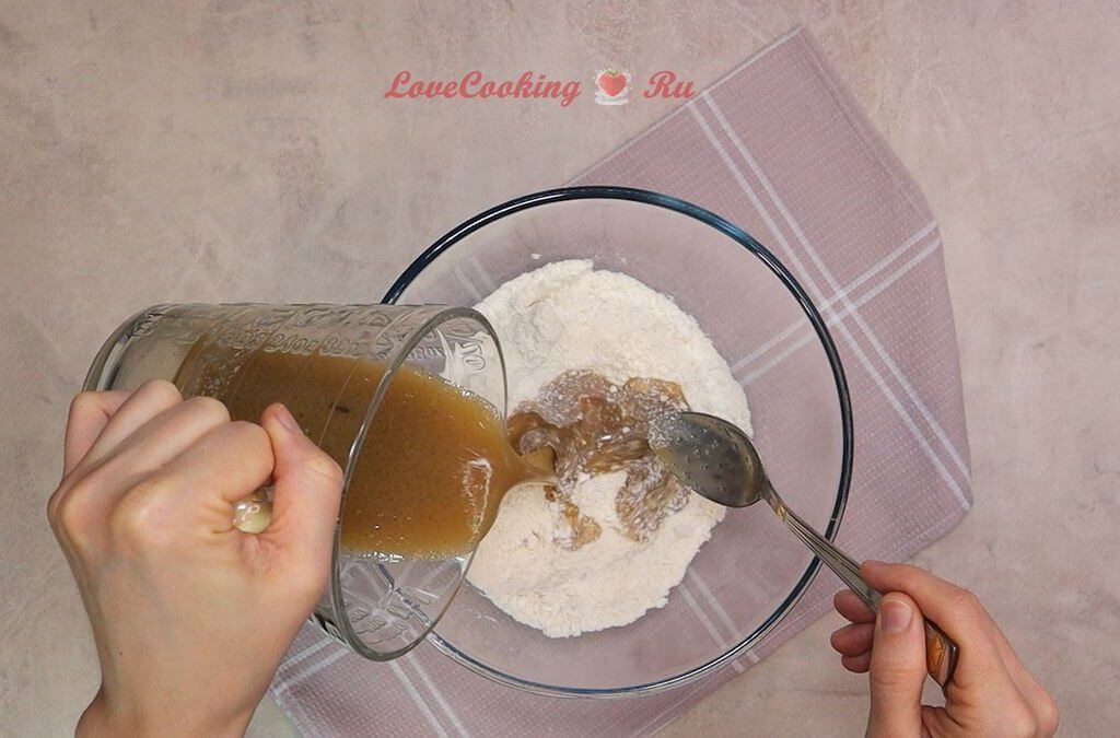 Соединяем оба вида муки, соду и соль. Перемешиваем венчиком.