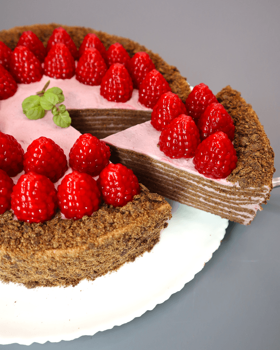 Торт диаметром 19 см, высотой 4 см, весом 1,1 кг (без малинок):
