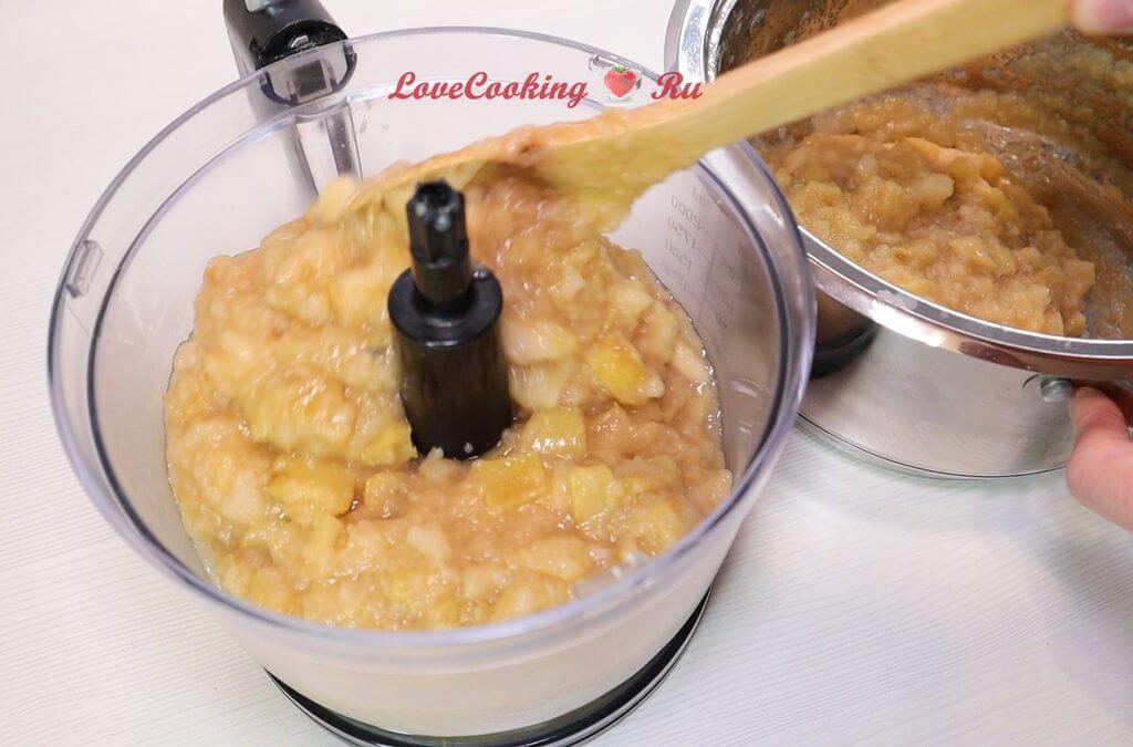 Я измельчала яблоки в чаше блендера, поэтому предварительно дала им остыть. Если будете измельчать погружным блендером, то можно практически сразу это сделать, как сняли с плиты.