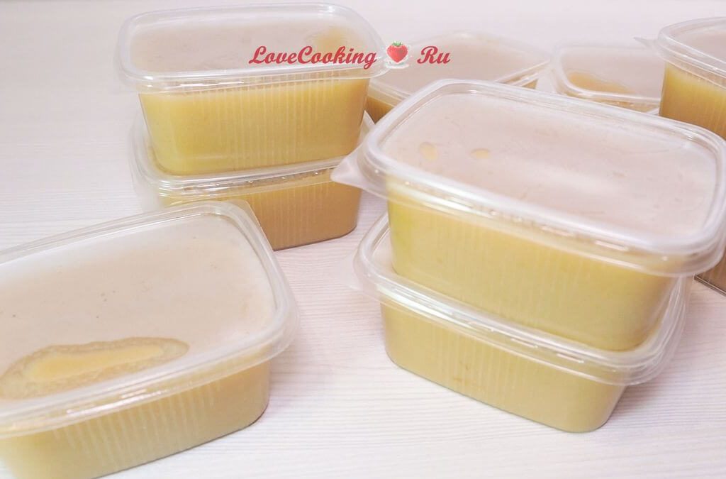 Далее я разложила пюре по контейнерам, подписала и отправила в морозилку. Такое пюре я буду использовать для приготовления зефира и моего любимого теста на яблочном пюре.