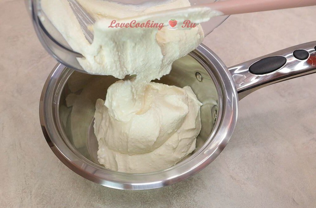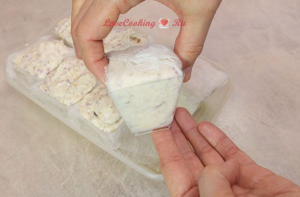 Убираем в холодильник на ночь. Я сливала сыворотку несколько раз. У меня её было немного.