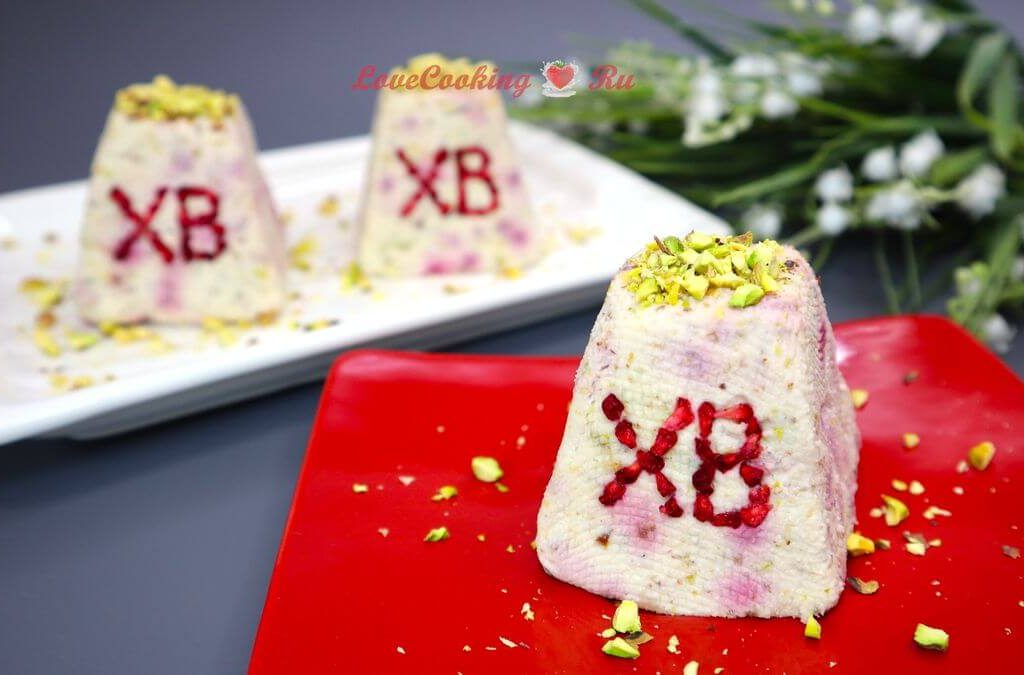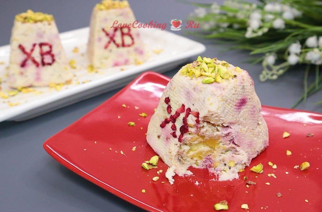 Вы можете использовать для этой пасхи любые орехи, сухофрукты, цукаты, цедру цитрусовых. У меня манго, малина и фисташки. Мне понравилось подобное сочетание.